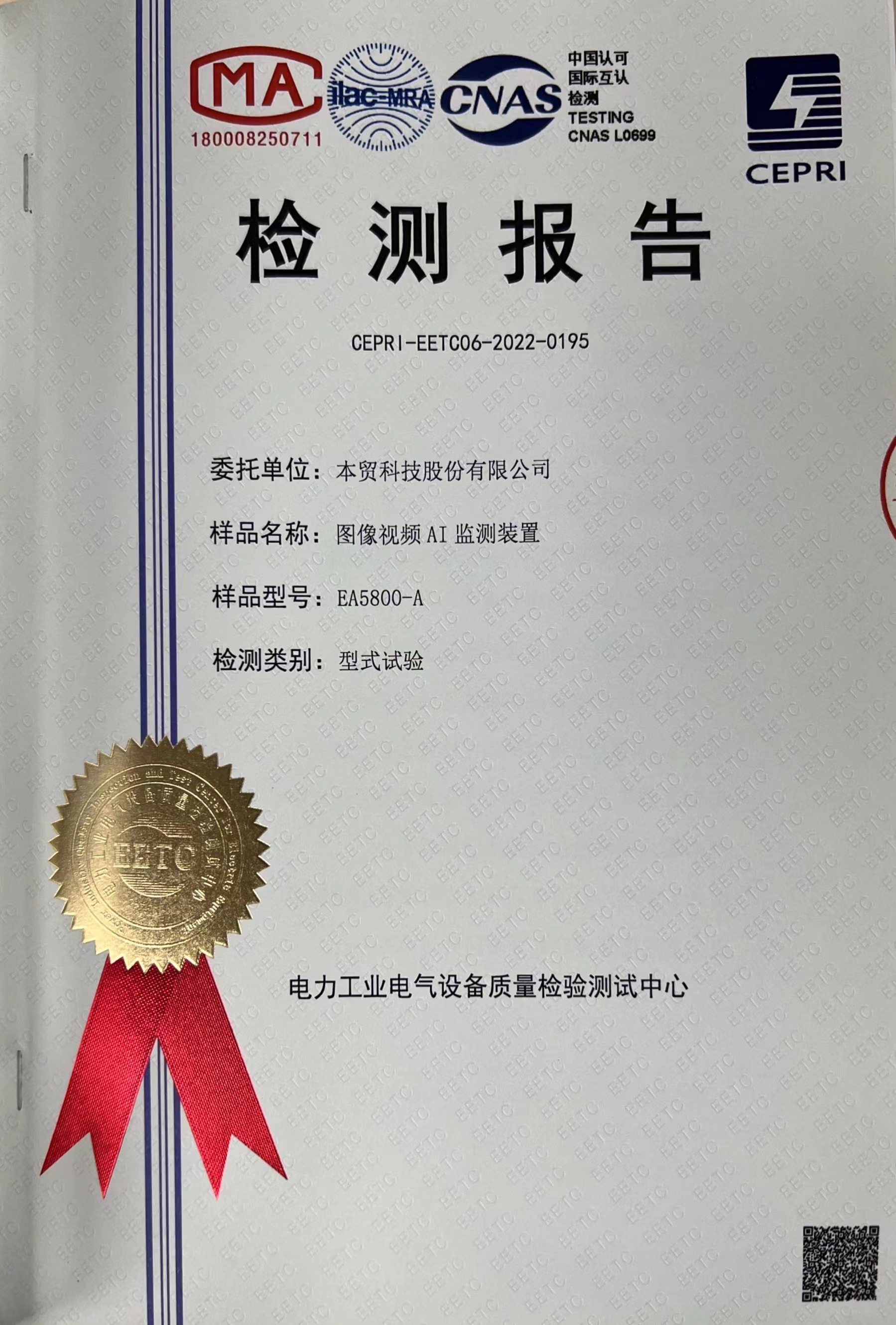 11月28日,本貿(mào)科技冷健博士團(tuán)隊(duì)主持研發(fā)的圖像視頻AI檢測(cè)裝置,順利拿到了電力工業(yè)電氣設(shè)備質(zhì)量檢測(cè)測(cè)試中心的檢測(cè)報(bào)告。
