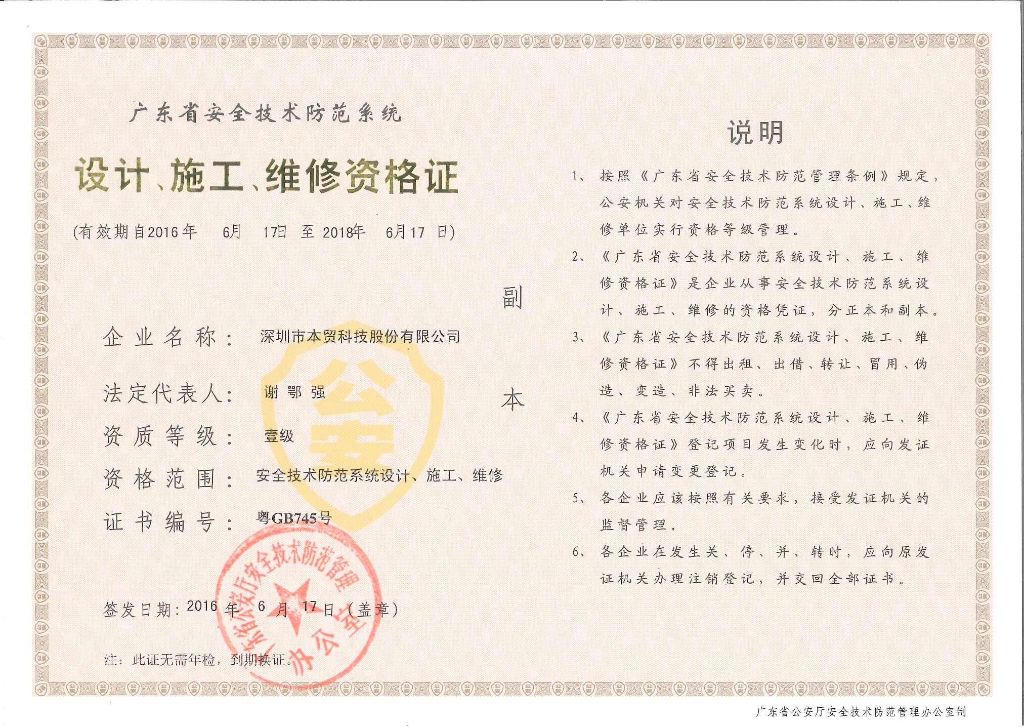 安防壹級資質(zhì)