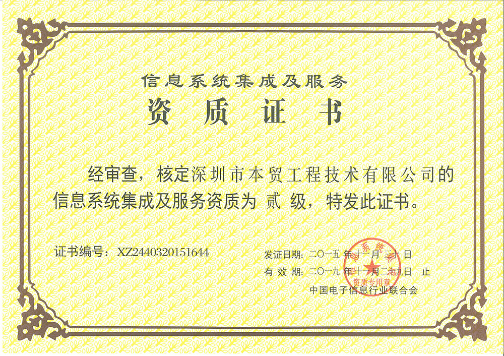信息系統(tǒng)集成及服務(wù)資質(zhì)貳級